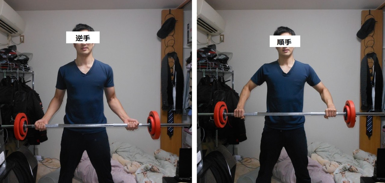 その場合、逆手のほうが高重量を扱えるので、スタンダードグリップでやる場合については逆手のほうが重量の面では良さそうですね。