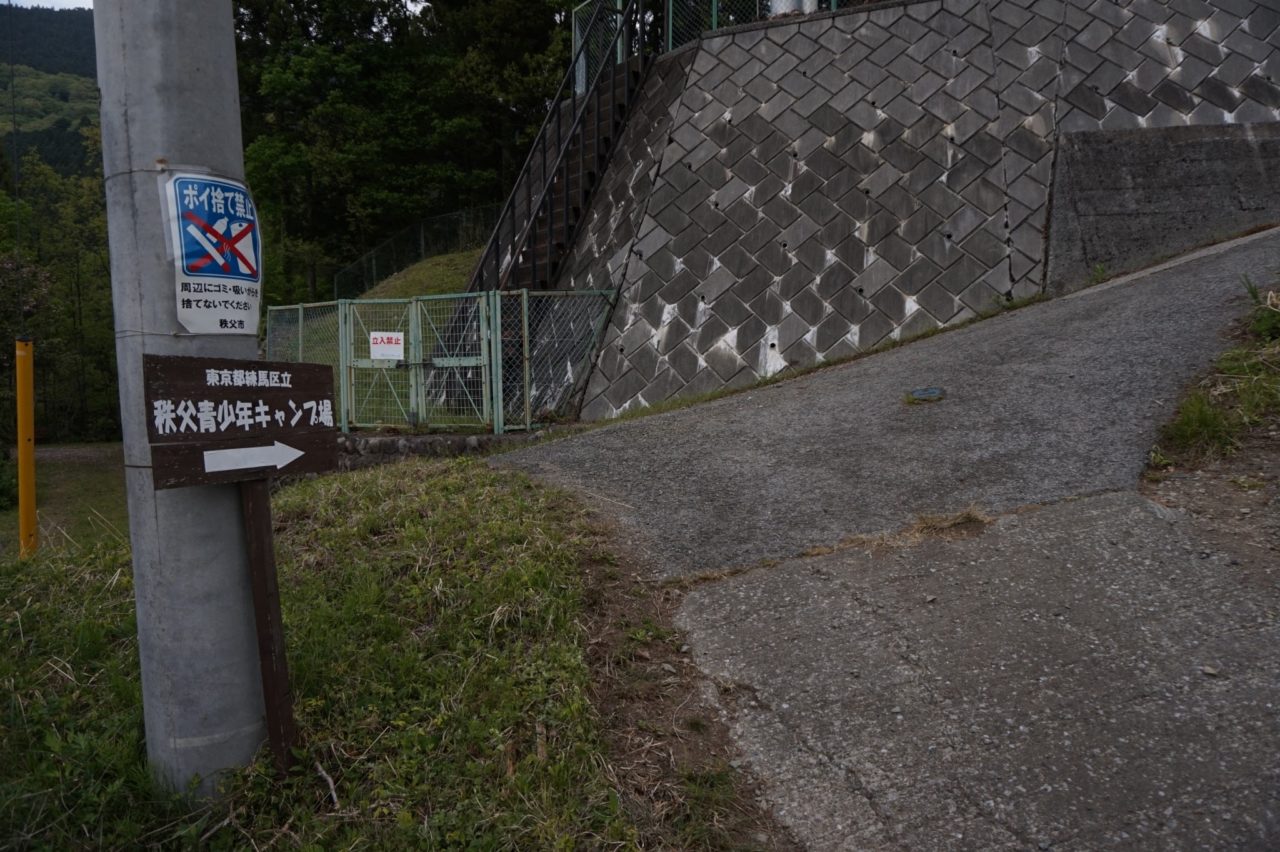 看板から数分歩くと練馬区立秩父青少年キャンプ場にたどり着きます。