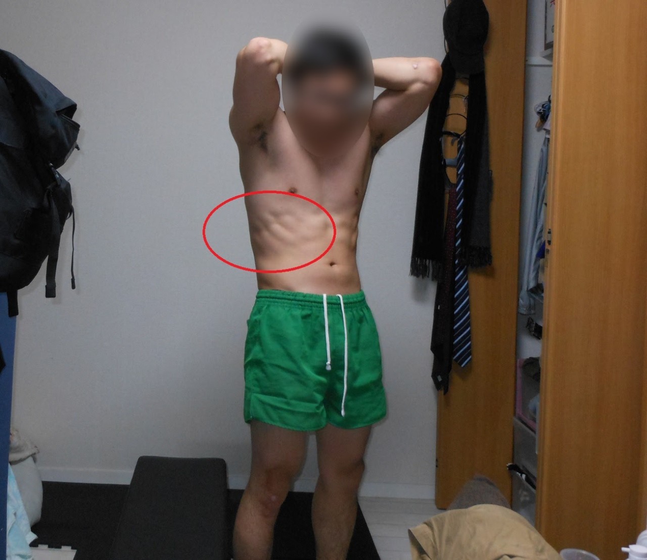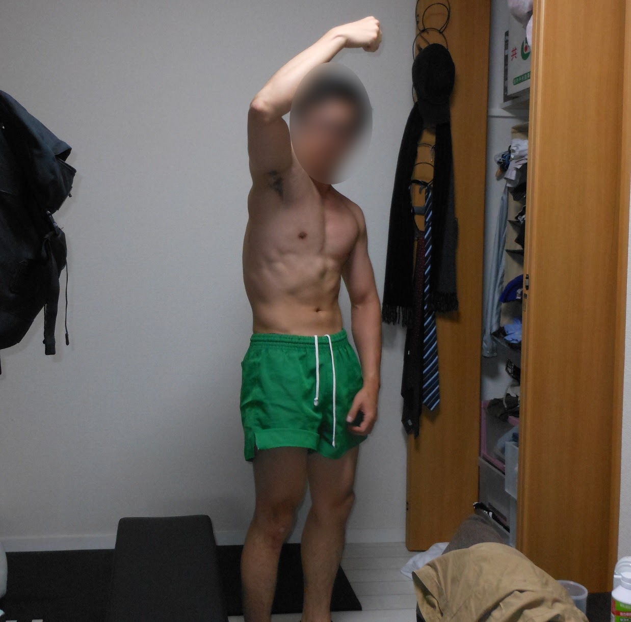 今日はだらだらトレーニングして、特に記事に書くことも無いなあと思ってとりあえず写真撮ってたんですが、ふと見たら脇腹付近にヤイバのようなとがった筋肉が現れてるではありませんか。普段からこんなんだっけ?と思いました。