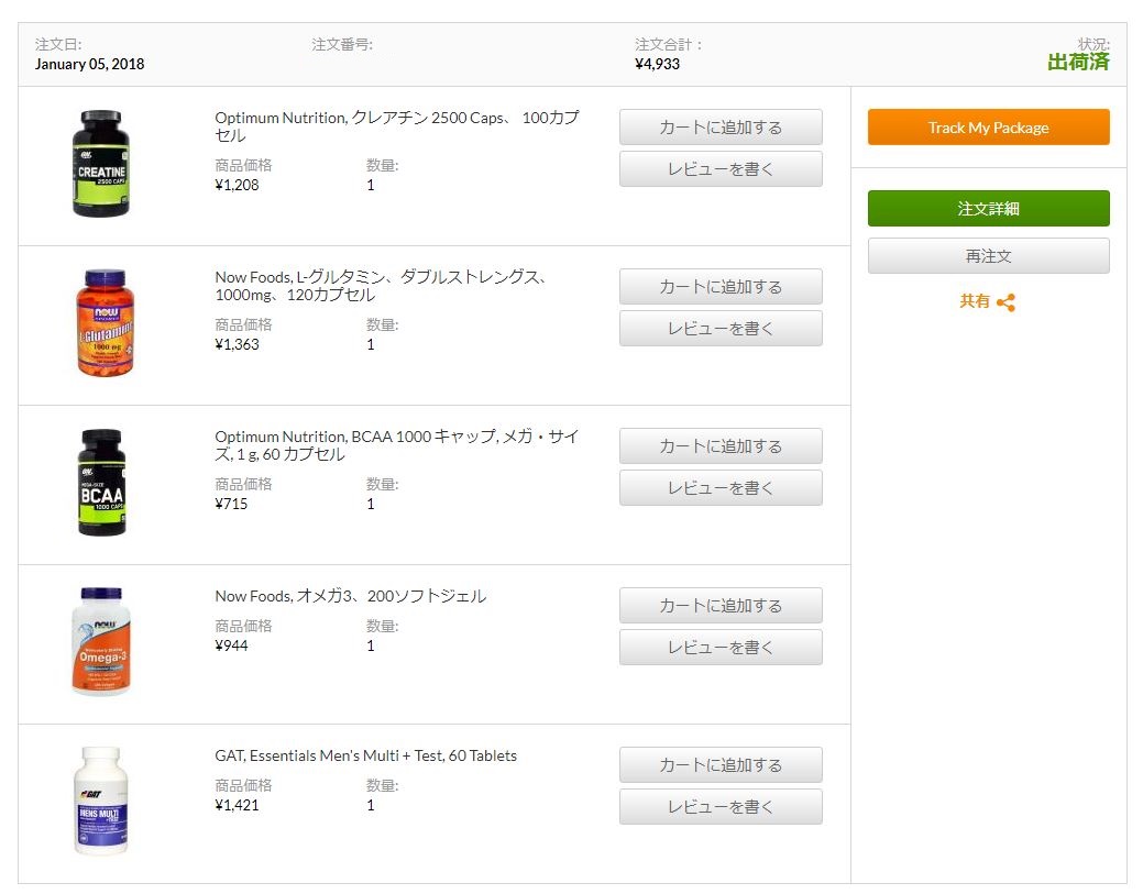 マルチビタミンとフィッシュオイルだけ購入できればよかったのですが、iHerbは一定金額以上で送料無料になるので、「無理して」送料無料になるよう金額を調整するために他は入れたって感じです。