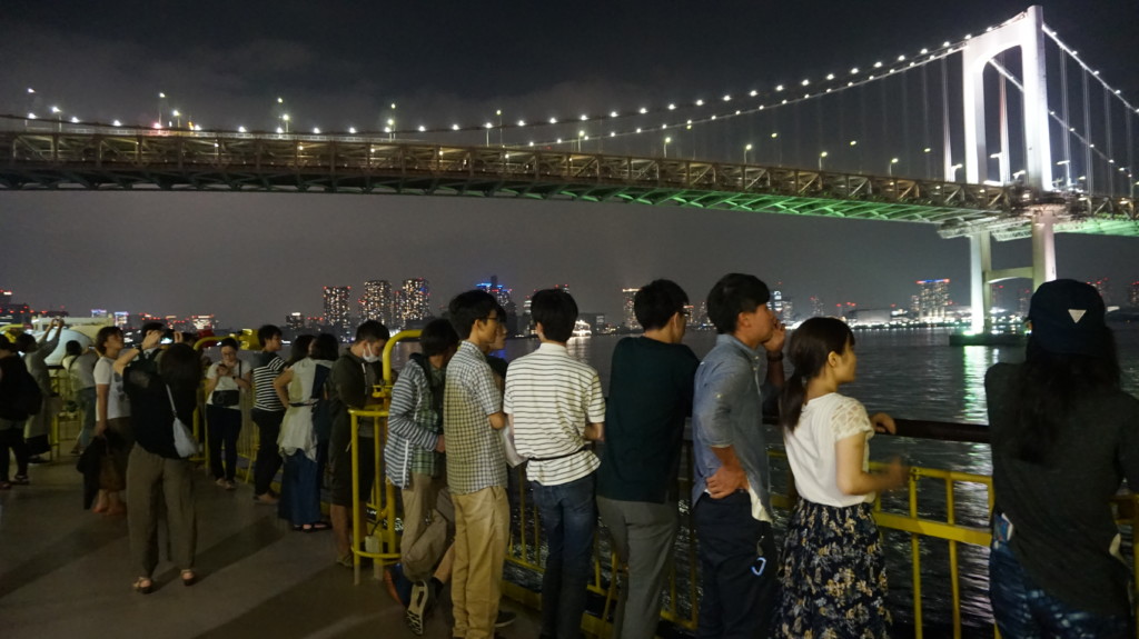 先日フェリーで四国徳島へ行ったときはゲートブリッジの間を通っていきましたが、今回はレインボーブリッジの間を抜けて海へ出ます。
