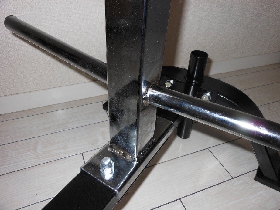 足の部分はこんな感じです。高さがありますので、下の部分にダンベルシャフトを置いとけばシャフトも邪魔になりません。