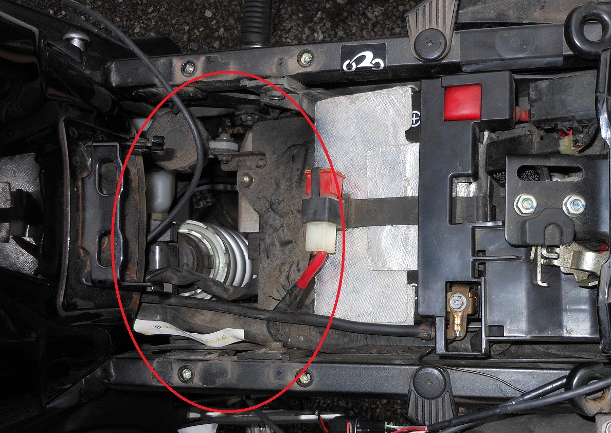 ここにはEXUPシステムのモーターがあり、EXUPはサイレンサーのパイプ内部で蓋を開け閉めし、排圧を稼ぎ、トルク特性を改善するとかそういったものだそうです。