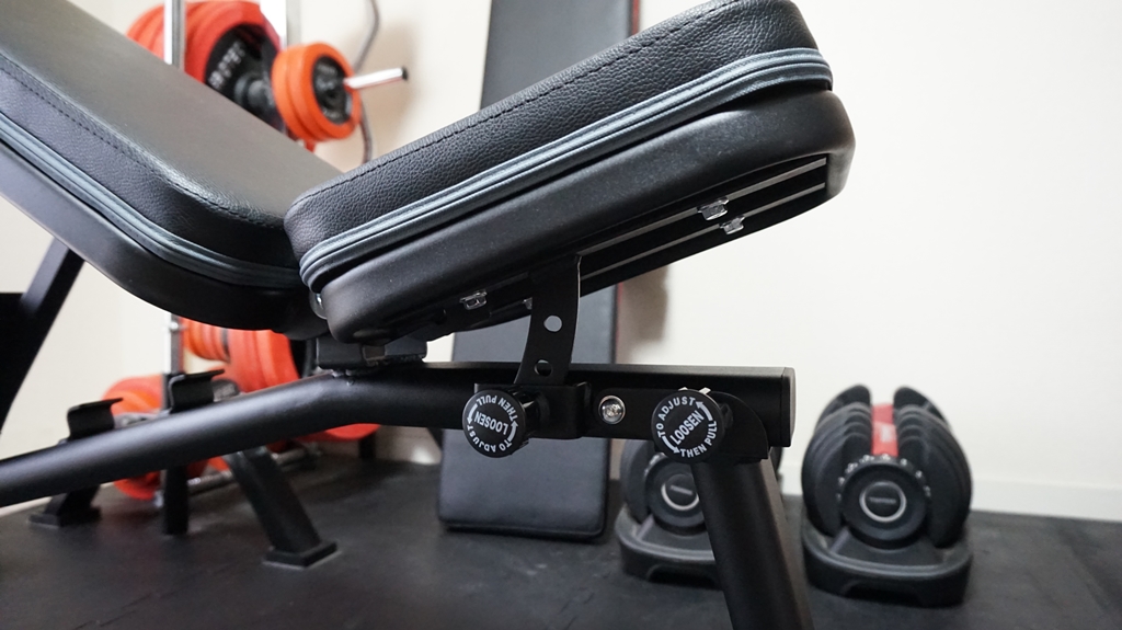 耐荷重300kgに、バックシートはラダータイプのワンタッチで4段階+ディクライン、座面調整可能といった感じでインクラインベンチで欲しい機能は全て満たしています。