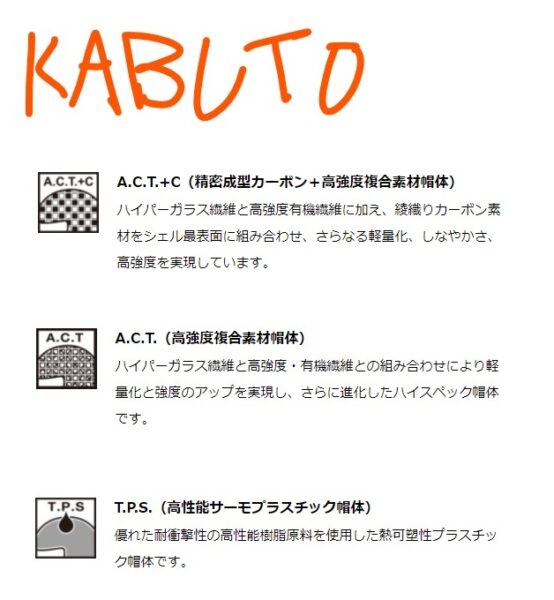 ※カブトに関しては具体的にはT.P.S.(高性能サーモプラスチック帽体)という名称となっています。