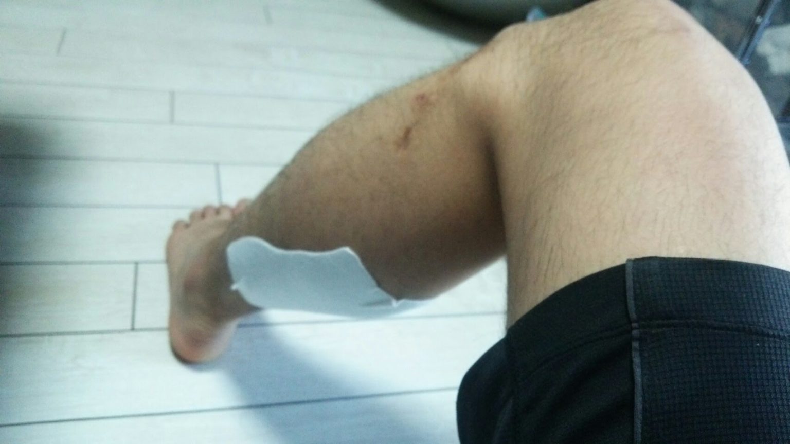 毛がぼーぼーの汚い写真ですみません笑。ウェイトトレーニングでではないのですが、左足のふくらはぎが肉離れしてしまいました・・・