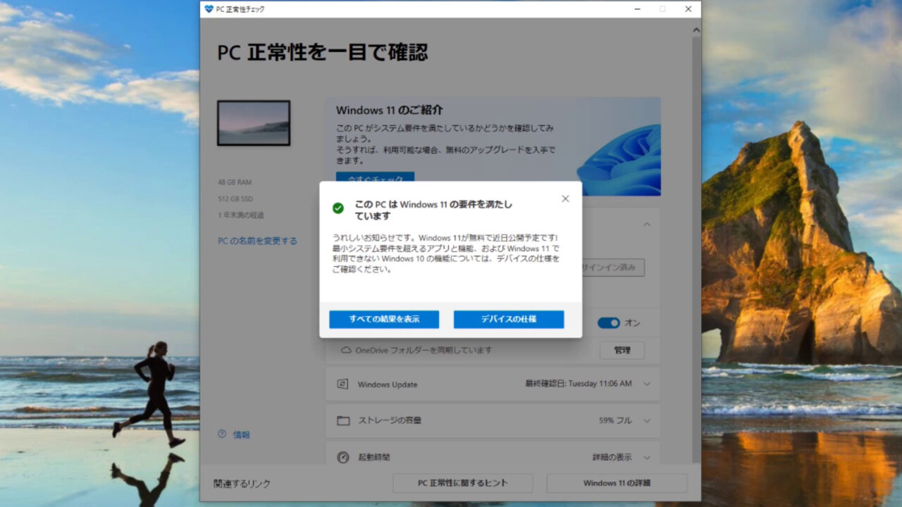 PCの正常性チェックアプリを使用しアップグレード可能かどうかを確認したらTPM 2.0に対応していなかった